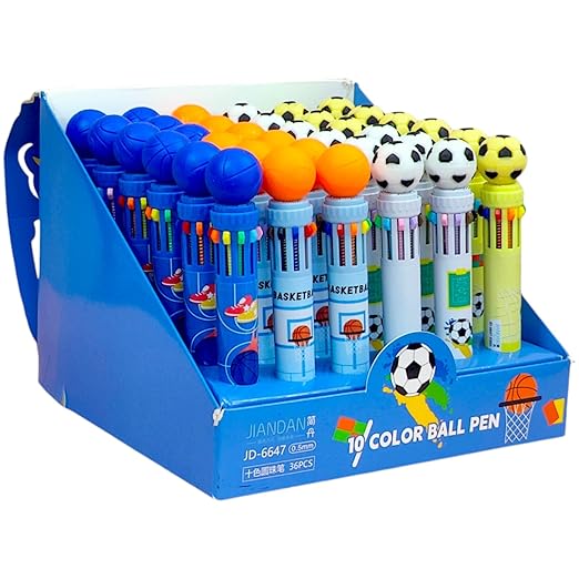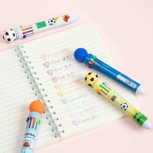 FunBlast 10 In 1 Ball Pens for Writing – Cartoon Design Lightweight Ball Pen with Comfortable Grip for Extra Smooth Writing, Stationery for School & Office, Birthday Return Gift (Foot Ball)