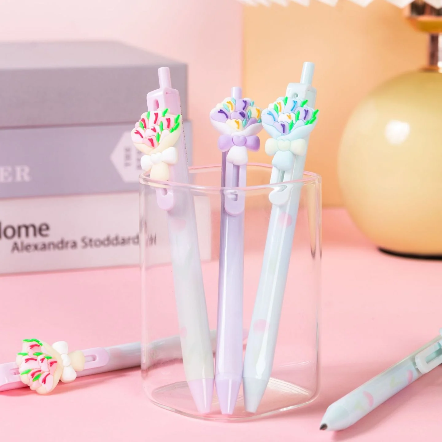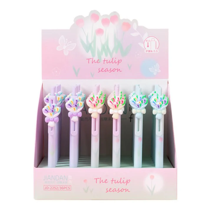 1pcs Kawaii Tulip Flower Press Gel Pen Cute 0.5mm Black Ink Signature Pens School Office Writing Supplies